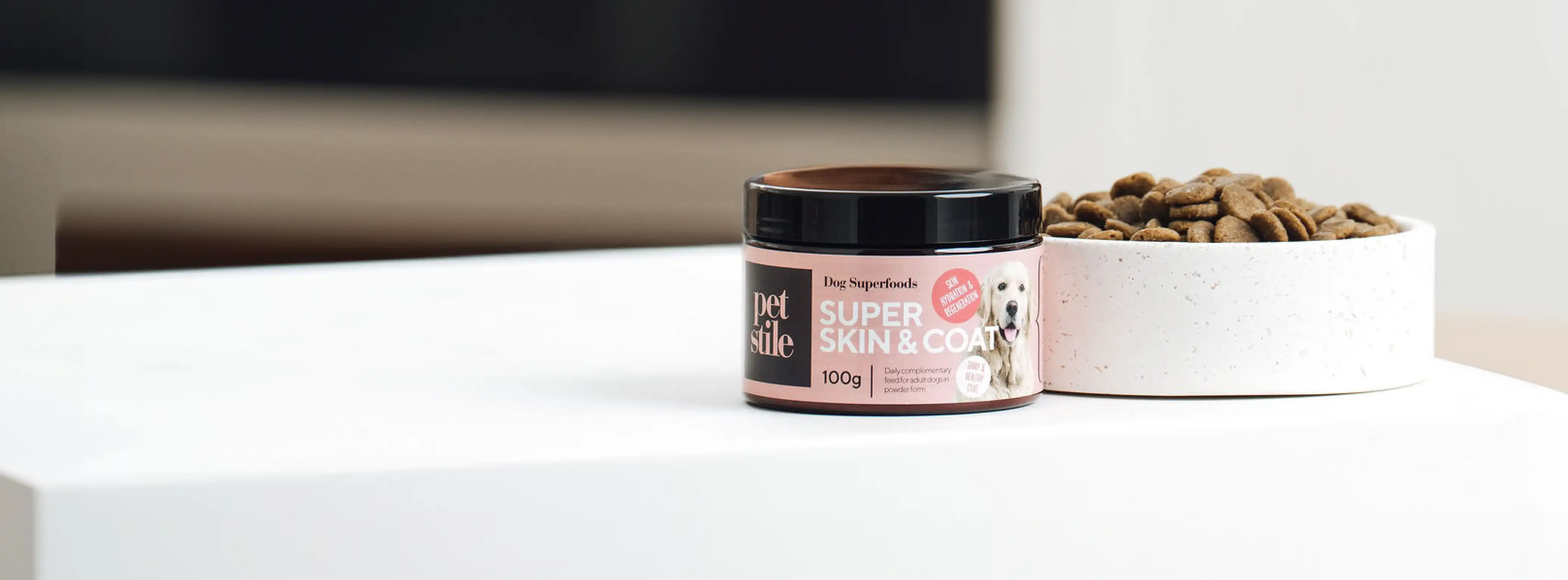 Les problèmes de peau et de pelage sont parmi les plus frustrants pour les propriétaires de chiens — et les plus mal compris. Les traitements topiques ne peuvent faire que tant. Un changement réel et durable vient de la nutrition de la peau de l'intérieur. Super Skin & Coat fournit les nutriments précis dont le corps de votre chien a besoin pour reconstruire une peau saine et faire pousser un beau pelage.